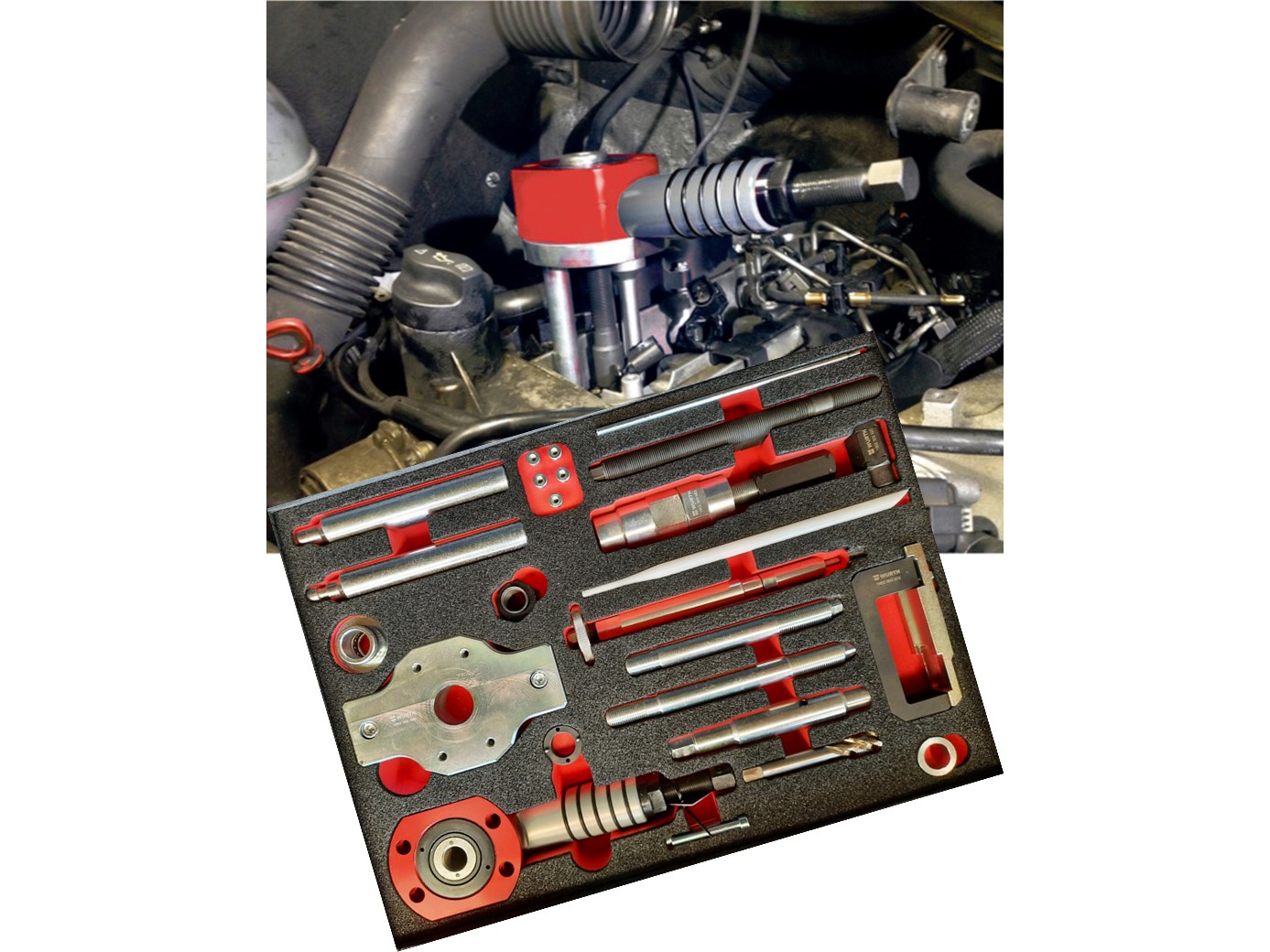 Wir haben hier ein Werkzeug, dass es ermöglicht die Piezo-Einspritzdüsen in unterschiedlichen Vorgängen mit und ohne hydraulischer Unterstützung zu extrahieren.