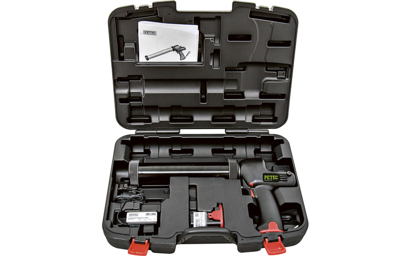 100687 PETEC Multi Akku Ausdrückpistole mit 7,2V Lithium LI-ION Akku zum Auftragen sämtlicher Kleb- und Dichtstoffe aus dem automotiven Bereich, welche sich in 400ml Schlauchbeuteln, 290ml und 310ml Kartuschen befinden.