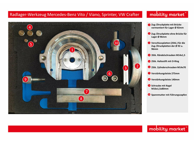 Radlager-Werkzeug Mercedes-Benz Vito / Viano (W639), Sprinter (906), VW Crafter (2E/2F)