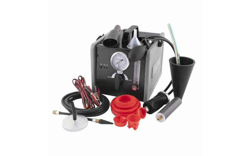 Dieser professionelle Rauch-Leck-Detektor dient zum Erkennen und Lokalisieren von Undichtigkeiten in Leitungssystemen von Kraftfahrzeugen.