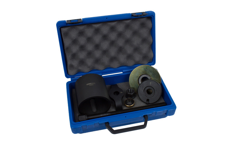 Dieser Spezialwerkzeugsatz dient zum Austausch der vorderen und hinteren Gummi-Metalllagerungen im Hinterachsträger.
