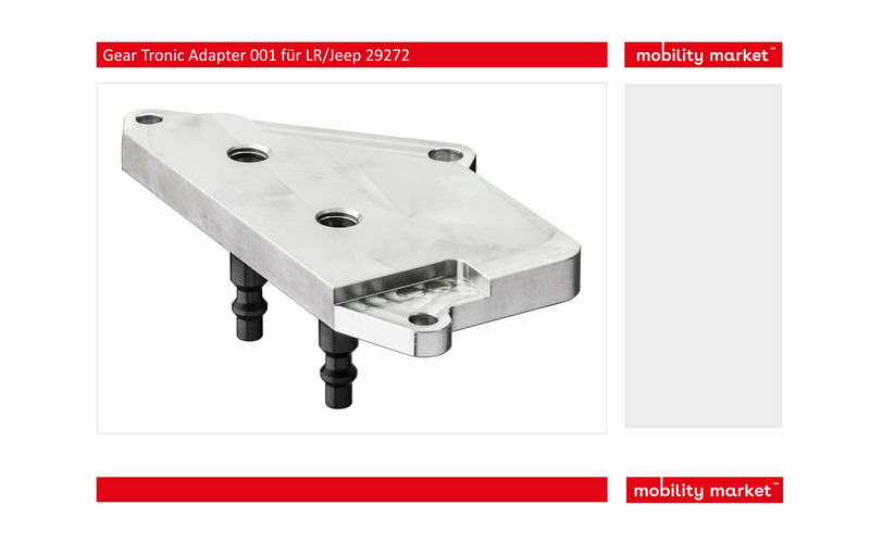 Zubehör für das Gear Tronic-Gerät. Zweiteiliger Adapter mit zwei Parker H2C-Anschlüssen. Zum Anschließen des Gear Tronic-Geräts für alle 9-Gang-Automatikgetriebe (ZF 9HP-48) in den Modellen Land Rover Discovery, Land Rover Evoque und Jaguar E-Pace.