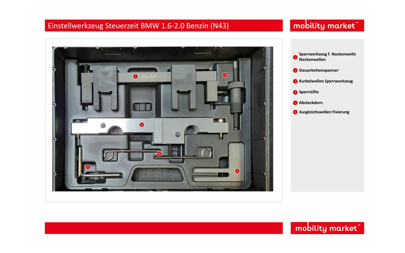 Werkzeugsatz mit dem Sie die Nockenwelle und die Kurbelwelle beim Wechseln der Steuerkette richtig positionieren können.
