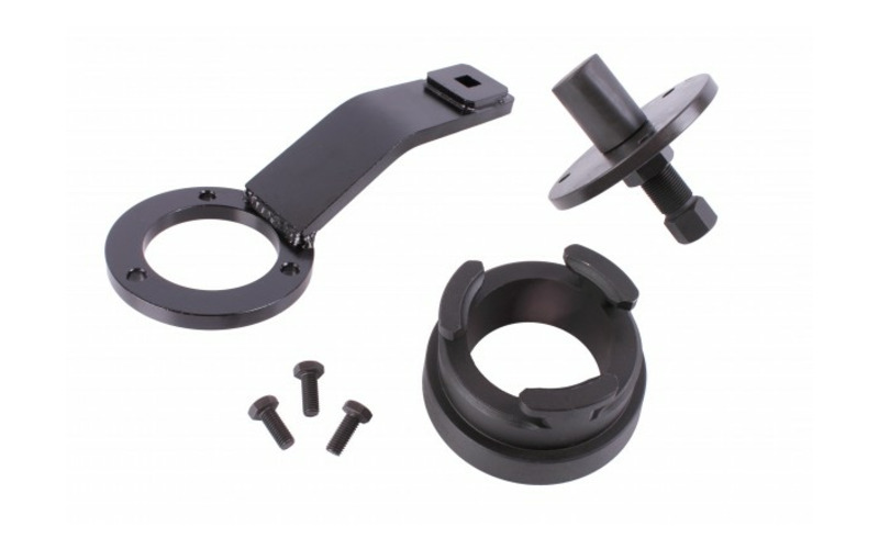dieses Spezialwerkzeug dient zum Halten der Kurbelwellen-Riemenscheibe während des Lösens oder Anziehens der mittleren Riemenscheiben-Schraube und ermöglicht somit eine sichere und beschädigungsfreie Demontage / Montage.