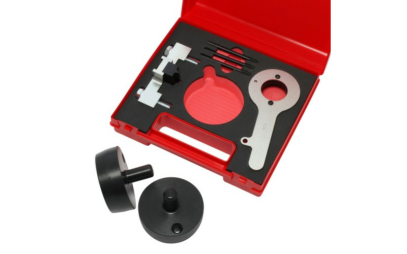 Dieses Werkzeug wird für den effizienten Ausbau des Schwingungsdämpfers / der Riemenscheibe verwendet, der/die in den Ford 2.0 EcoBlue (Panther) Dieselmotoren installiert ist. Die Riemenscheibe muss entfernt werden, um Zugang zur Zahnriemenabdeckung zu erhalten.