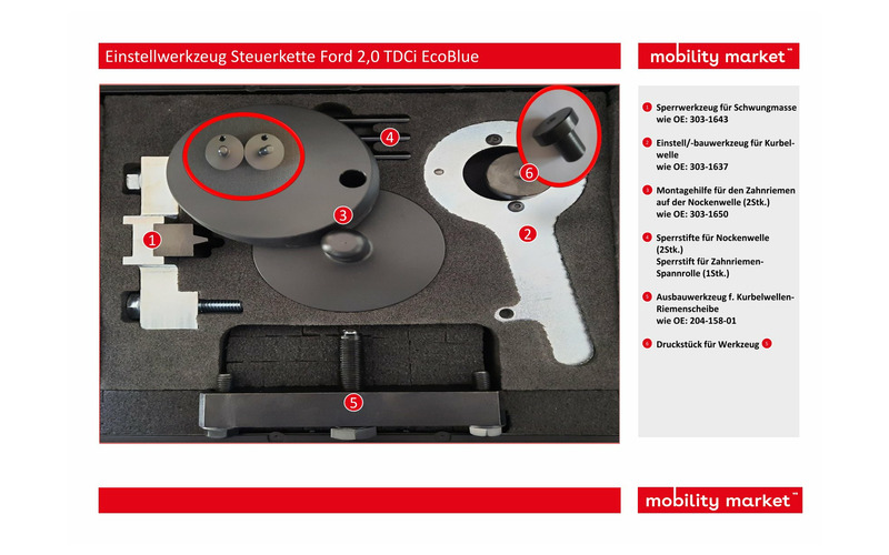 Dieses Einstellwerkzeug wird bei dem Aus- und Einbau von Zahnriemen in Öl bei 2.0TDCi EcoBlue ‚Panther‘ Dieselmotoren, die in Ford Pkw und leichten Nutzfahrzeugen eingebaut sind, eingesetzt.