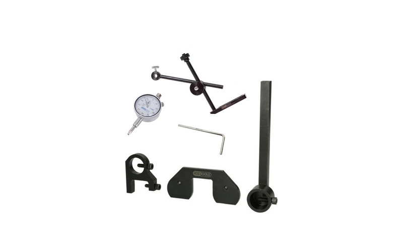 zur besseren Hand habung haben wir unser Mietwerkzeug zusätzlich mit einem Messuhrständer und der dazugehöringen Messuhr, sowie mit einem Stift zum Fixieren der Kurbelwelle wie 303-1059 ausgestattet.