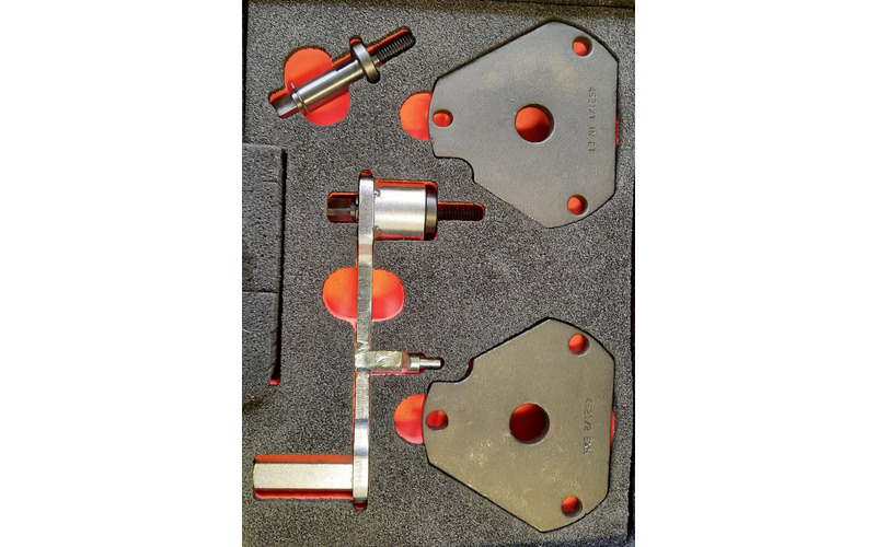 Werkzeugsatz um die Nockenwelle und die Kurbelwelle bzw. Nebenaggregate, die vom Zahnriemen angetrieben werden beim Wechseln des Zahnriemens richtig positionieren und blockieren zu können.