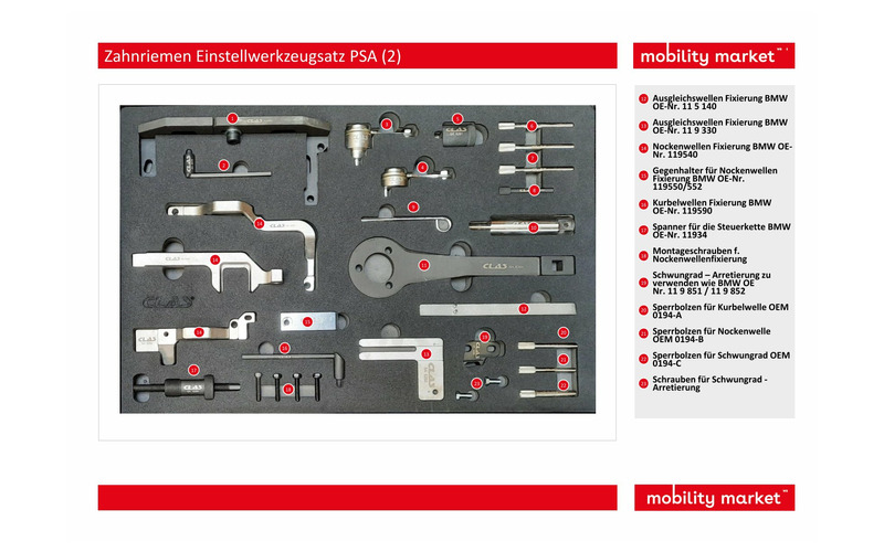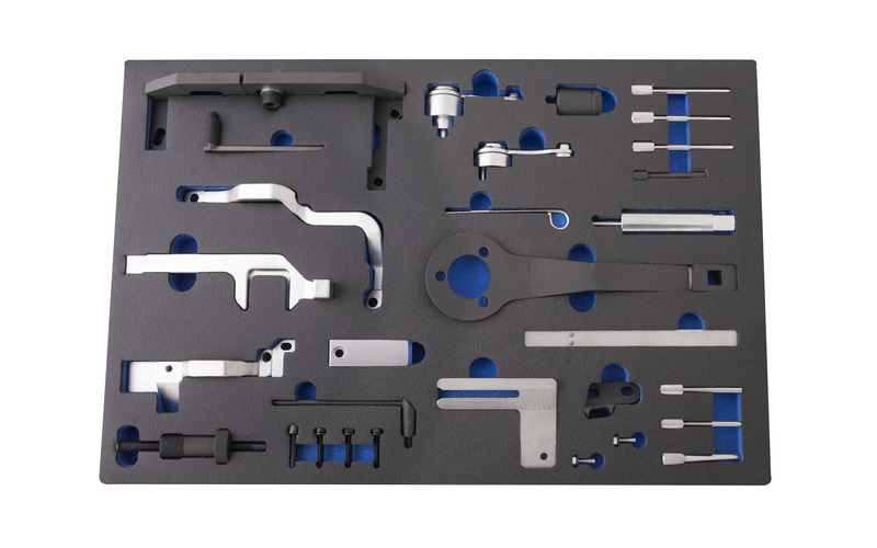 Werkzeugsatz mit dem Sie die Nockenwelle und die Kurbelwelle beim Wechseln des Zahnriemens richtig positionieren können.